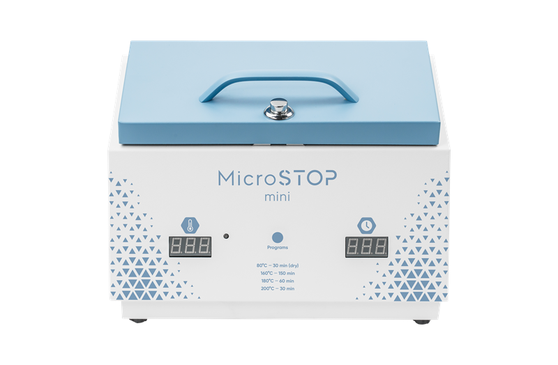 O MicroSTOP Mini é um esterilizador compacto de calor seco, ideal para pequenos salões e para profissionais independentes de unhas, tatuagem, piercing, design de sobrancelhas, cosmetologia e podologia. O equipamento tem controlo automático e o visor digital mostra claramente a temperatura e o tempo de esterilização.