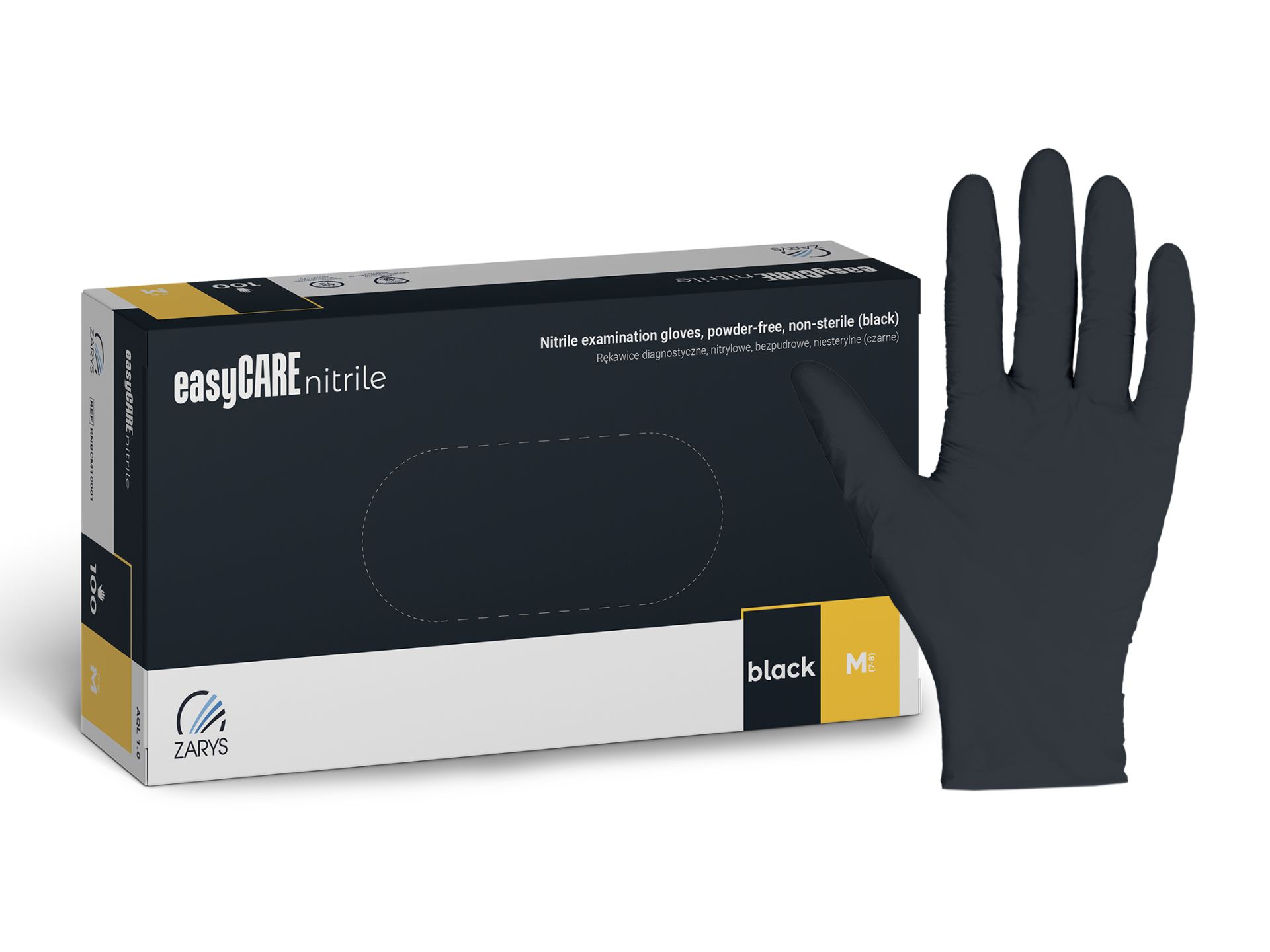 Luvas de nitrilo easyCARE pretas — fiáveis e confortáveis no dia a dia (tamanho M).