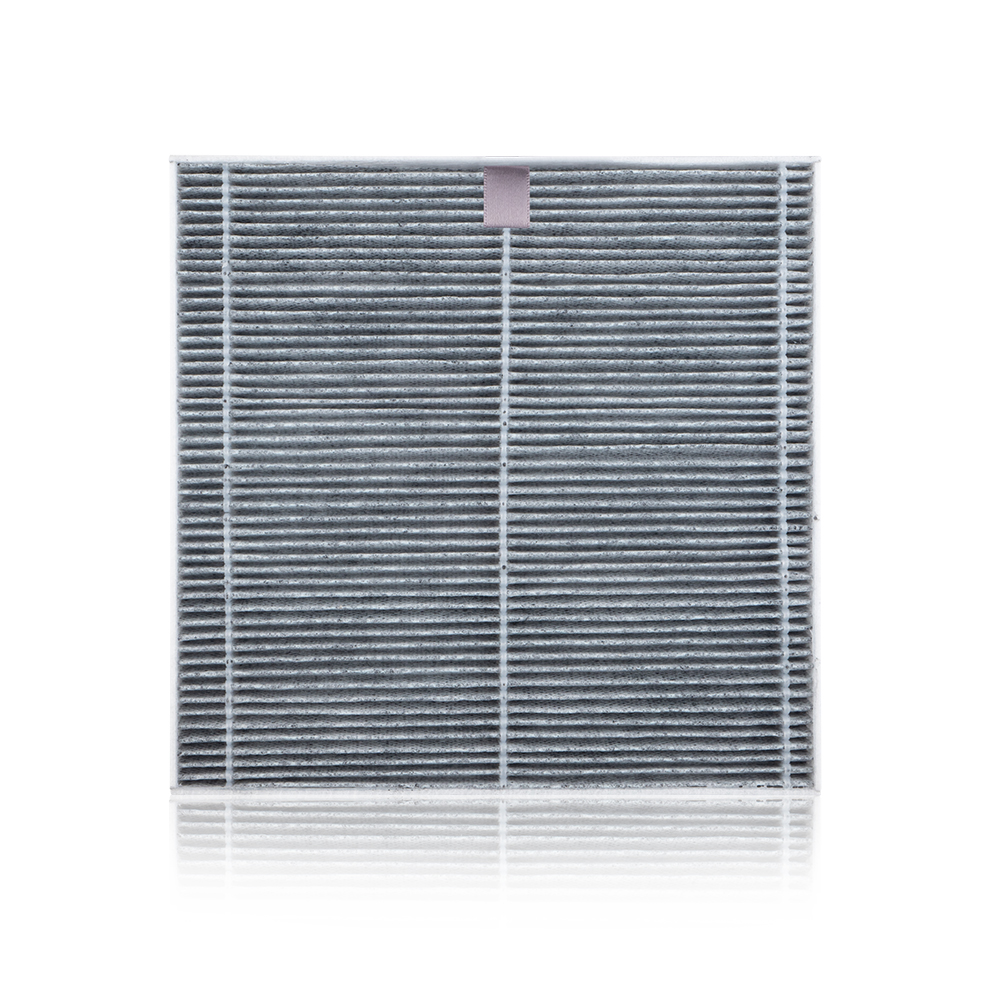 A estrutura termina com uma camada de carvao ativado moldado – a principal caracteristica e vantagem.