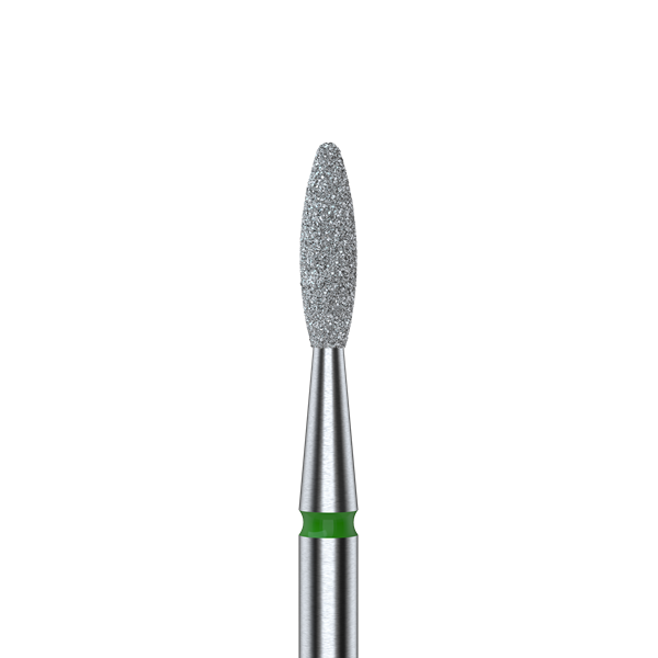 A broca diamantada Staleks FA10G021/8K, no formato “chama”, foi criada para um trabalho rápido e eficaz em áreas de pele mais duras e para modelação das unhas. A graduação verde indica uma granulação mais dura, ideal para trabalho intensivo nos sulcos laterais, calosidades e fissuras.