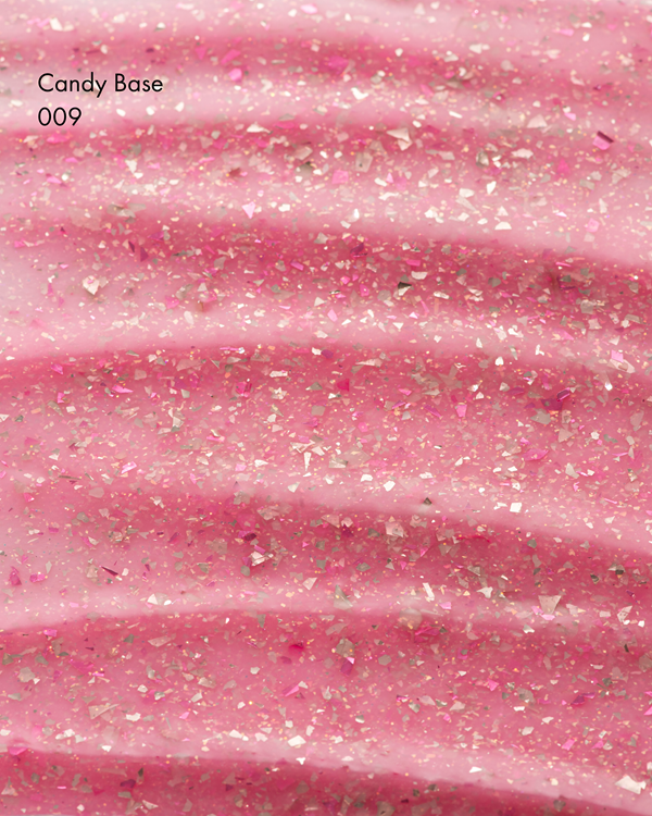 F.O.X Candy Base 009 — base colorida com partículas de folha e glitter, tom rosa.