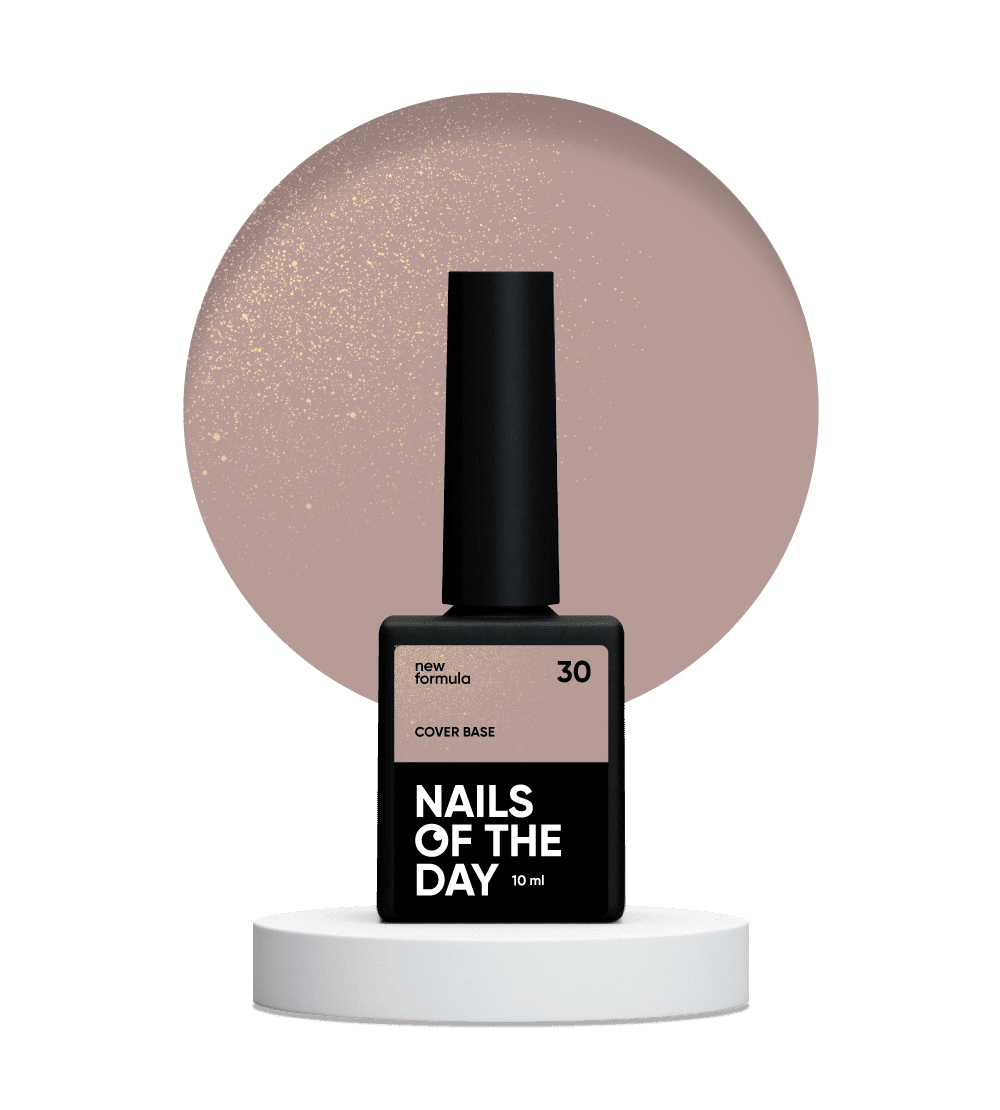 A base camufladora Nailsoftheday Cover Base New Formula 30, num tom nude elegante com shimmer dourado subtil, é ideal para reforçar e corrigir as unhas. Permite modelar a arquitetura, disfarçar imperfeições e nivelar a superfície.
