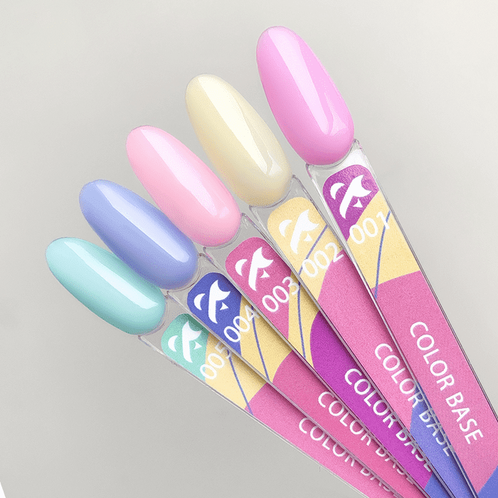 As Color Base podem ser usadas sozinhas ou em combinacao com outros vernizes de gel. As bases sao altamente autonivelantes e tem dureza media. Disponivel em qms.com.pl. Facilitam a criacao de uma grande variedade de designs.