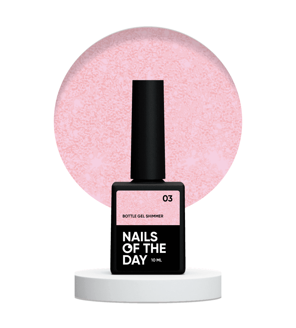 NAILSOFTHEDAY Bottle Gel Shimmer 03 é um gel ultra‑resistente, rosa suave com brilho. A consistência média permite uma aplicação fácil e uniforme, enquanto o micro‑shimmer cria uma superfície delicadamente iridescente. Indicado para reforçar uma lâmina ungueal fraca. Polimeriza rapidamente, não encolhe durante o uso e não contém substâncias tóxicas – uma escolha segura e fiável.