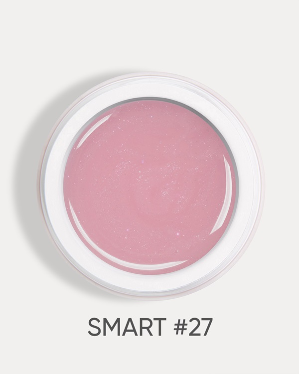 DARK Smart Builder Gel 27 Nude Shimmer – gel construtor autonivelante com shimmer fino para looks nude naturais. Estrutura durável e elástica.