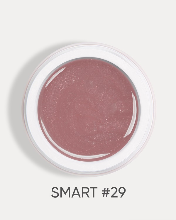 DARK Smart Builder Gel 29 Nude Natural Shimmer é um gel de construção profissional autonivelante com glitter shimmer fino, criado para estilizações subtis, naturais e elegantes.