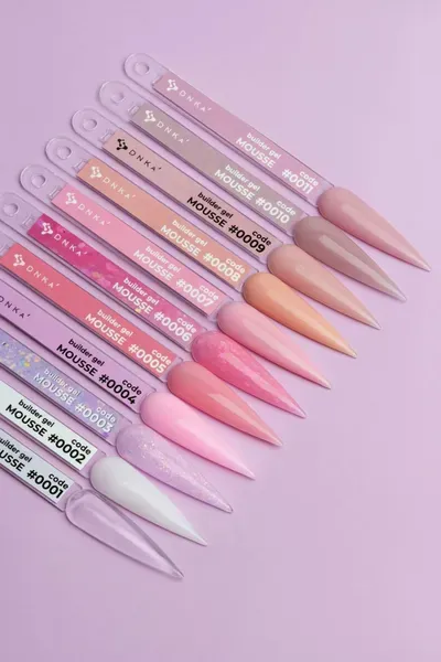 DNKa’ Builder Gel Mousse #0008 é um gel único que combina uma consistência mousse, média e agradável, com propriedades tixotrópicas. Permite trabalhar rapidamente — pode ser aplicado em várias unhas ao mesmo tempo — e o seu auto-nivelamento reduz a necessidade de limagem.
