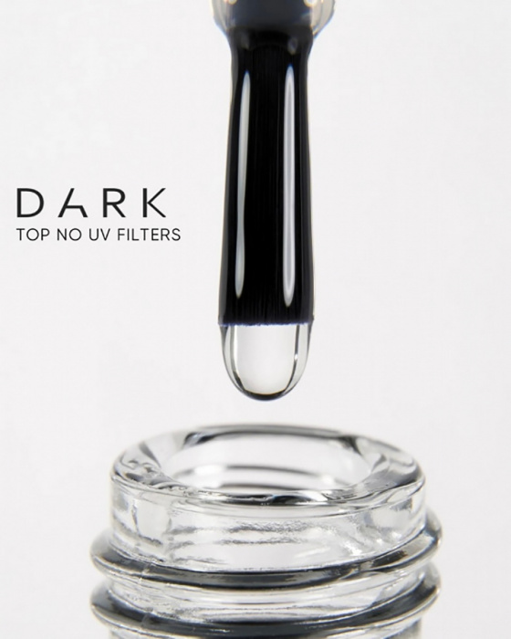 DARK Top sem filtros UV é um top transparente e brilhante sem camada de dispersão, para estilizações em gel e híbridas. Não contém filtros UV, por isso é ideal para tons escuros — não altera a cor e não dá reflexo azulado.