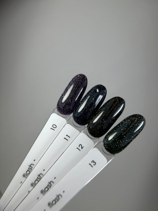 O verniz gel refletor Dark Flash 11 com glitter tem consistência densa e intensa, garantindo uma cor profunda já em 1–2 camadas. Contém partículas finas de glitter que criam o efeito “flash” — cintilação marcante à luz, especialmente visível sob iluminação artificial ou em fotografia com flash. A consistência densa cobre a unha de forma uniforme.