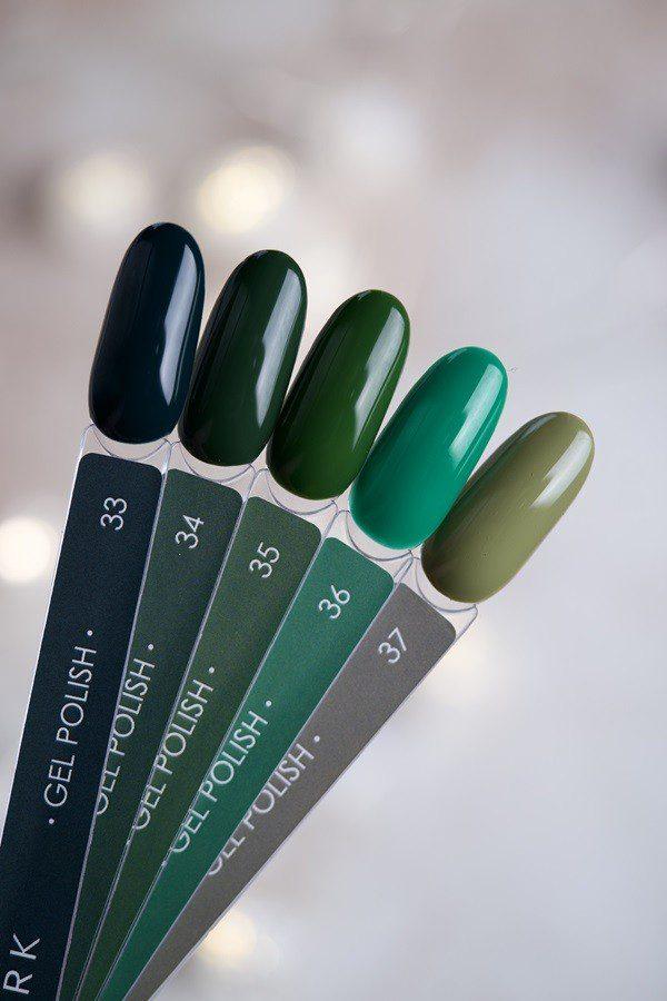Verniz de gel verde DARK 34, 6 ml. O verniz de gel DARK espalha-se facilmente, não escorre para as cutículas e cria uma cobertura forte e flexível. A manicure mantém-se sem lascar nem rachar e não perde a cor. Adequado tanto para unhas naturais como para unhas alongadas.