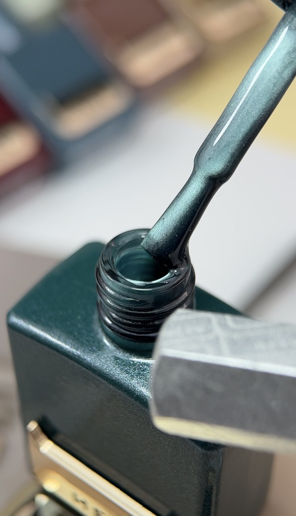 HEYLOVE Gel Polish Twill é um verniz gel profissional com um subtil efeito “olho de gato” e um delicado brilho prateado da coleção Textile. O tom esmeralda, inspirado na textura de tecidos premium, dá à manicure um aspeto elegante, acetinado e contemporâneo.
